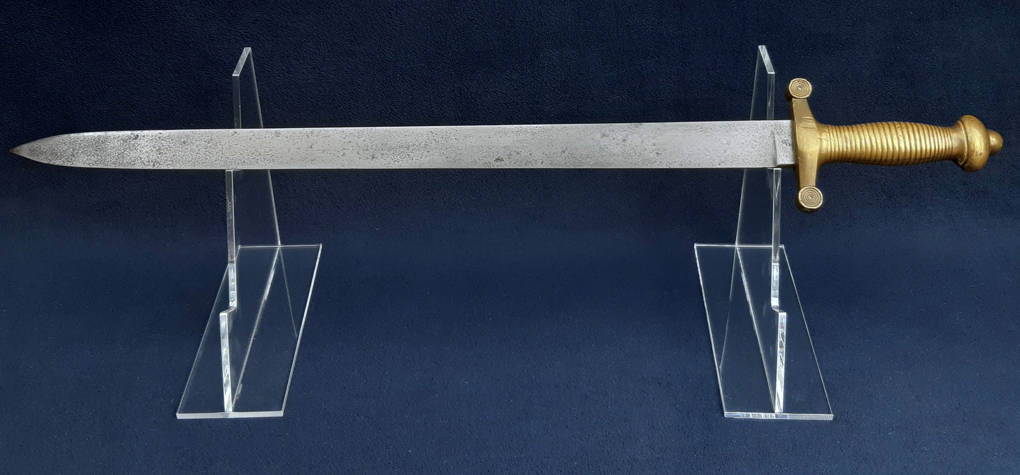 Sidearms with the form of a neoclassical ‘gladius’ appear to have originated with Napoleon’s love for all things Roman, and the French 1771 ‘Eagle Head’ Artillery sword. A series of very similar-looking short swords were subsequently designed, including the French 1816 & 1831 Artillery, the US Model 1832 Foot Artillery, the Swiss 1842 Pioneer’s, the Russian 1848 Pioneer’s and the British 1855 Land Transport. They were not particularly useful for combat (the gladius having become obsolete for good reasons) so remained either ceremonial items or in the role of a machete for various field tasks such as clearing brush.