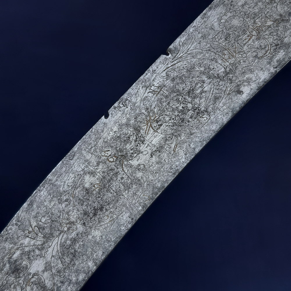 The blade is stamped on its exposed tang with a three-part stamp ‘E95’, followed by a crossed swords emblem, followed by ‘50’, indicating the year of manufacture was 1950. The pommel end is stamped with ‘112’ and ‘tgf’. The letter code ‘tgf’ was used to indicate Československá Zbrojovka, the state arms factory in Brno, during the Communist period. The scabbard frog hook is stamped with a similar three-part date stamp of ‘E3’ followed by a lion emblem followed by ‘48’ for 1948, and next to this with another ‘tgf’.