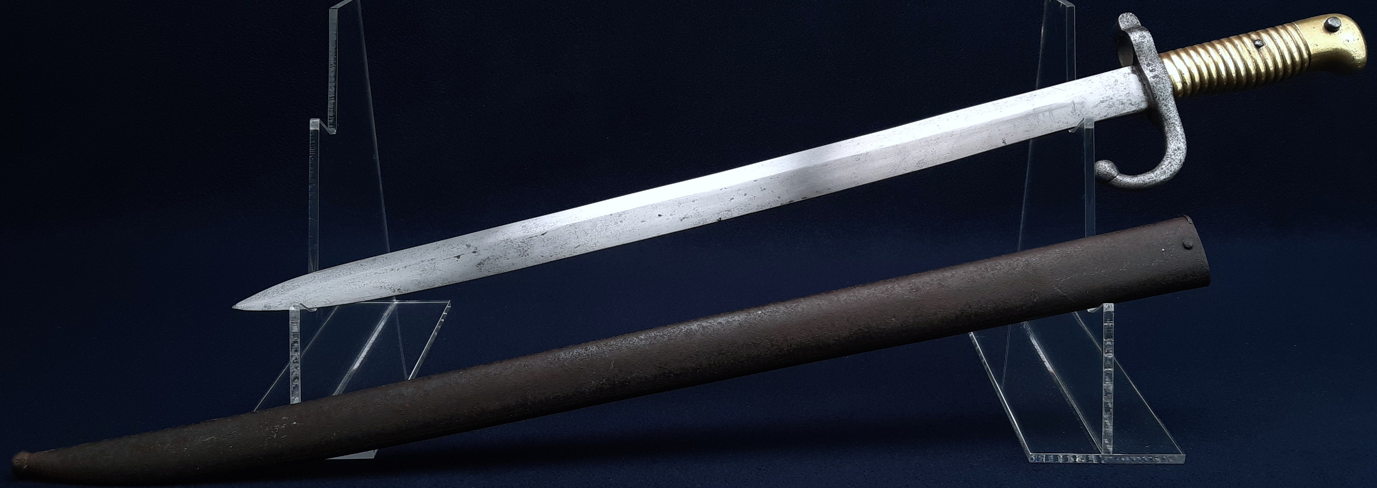 These bayonets were made at the French arsenal of Chatellerault for two months of the year 1870 during the Franco-Prussian War (July 1870 - January 1871), intended to fit the Remington Rolling Block rifle. They are sometimes referred to as ‘Defense Nationale’ bayonets, presumably because they were commissioned as a matter of emergency for national defense.