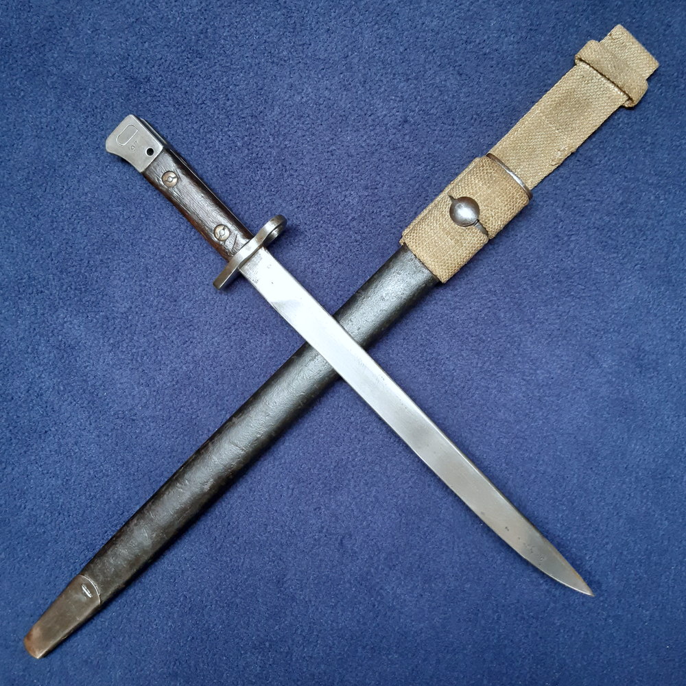 These bayonets were made to fit the many SMLE No. 1 rifles made at Ishapore. Over time Indian bayonets became progressively simplified: the MkIII differed from the MkII in having a squared pommel and straight grips (without the curve to the belly of the grip found on other 1907 Patterns).