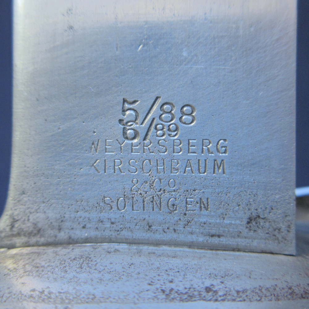 British domestic manufacturers in the late 1800s could not always meet government production contracts for swords and bayonets, and the excess was typically outsourced to the large German factories based in the city of Solingen, of which Weyersberg, Kirschbaum and Co was one of the most prominent. British government inspectors on site ensured quality was maintained.