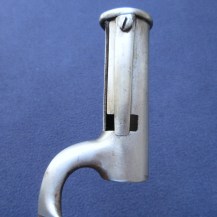 The ‘Indian Spring’ was reputedly designed by Ezekiel Baker, the same gunsmith who created the famous Baker Rifle, to improve the fastening of the socket bayonet to the India Pattern Brown Bess musket. This is the later version of the spring introduced around 1820 with an almost rectangular shape, still doing the same job of preventing the bayonet from shifting position once it had been fixed to the rifle, but stronger than the early type, which was more triangular.