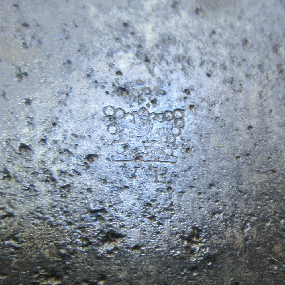 The pommel is stamped with ‘492’, probably an item or rack number. Both of the grips are stamped with a crown inspection mark, still very legible due to their good condition. The ricasso of the blade is stamped on one side with a crown over ‘VR’ (Victoria Regina) and on the other side with a crown inspection mark for Enfield. The back of the pommel bears the same inspection mark, and another similar is on the spine of the blade.