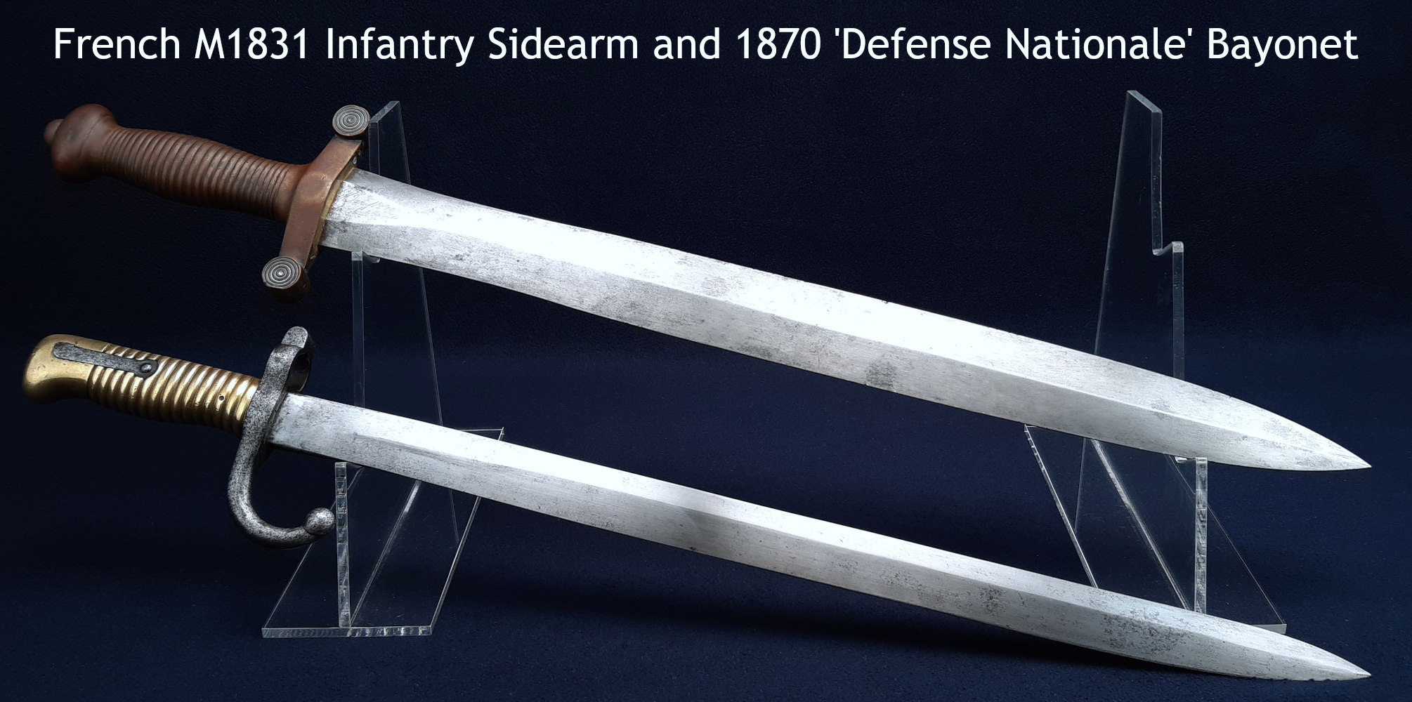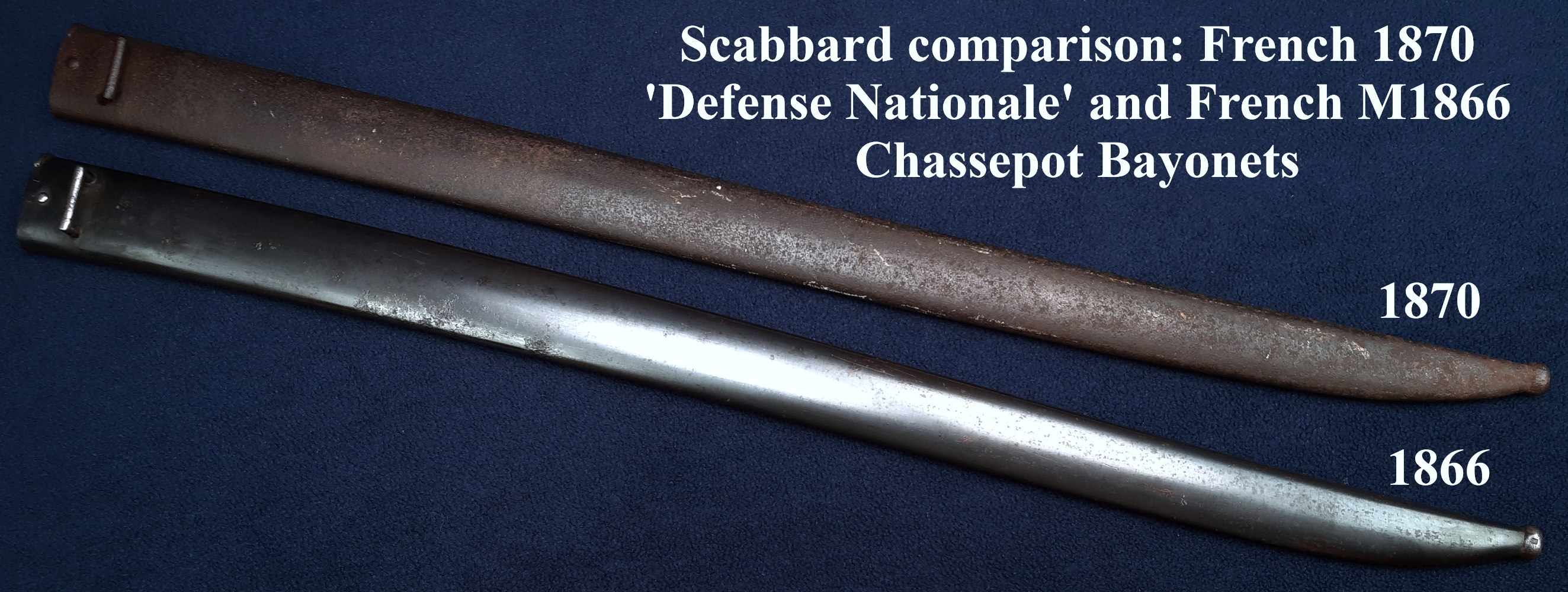 They are in many respects like the German ‘ersatz’ bayonets of WW1, including the use of repurposed materials: the French combined the hilt and grip of the M1866 Chassepot bayonet with blades of the much older M1816 and M1831 infantry sidearms, (both of ‘gladius’ style). These obsolete short swords were presumably seen as expendable sources of good blade steel, but they needed significant reshaping to make serviceable bayonets.