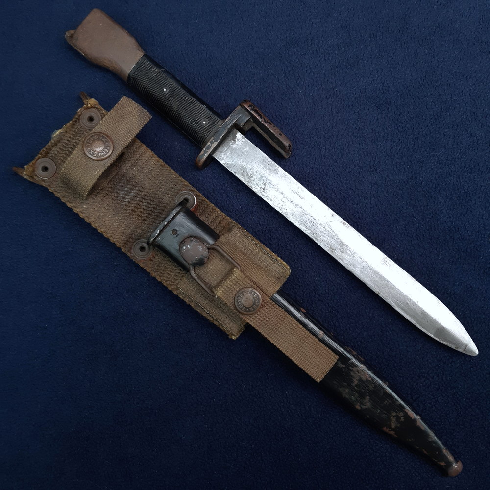 The bayonet is stamped on the pommel with the serial number ’03697’. The scabbard body is stamped with the serial number ‘41897’, slightly obscured by paint.