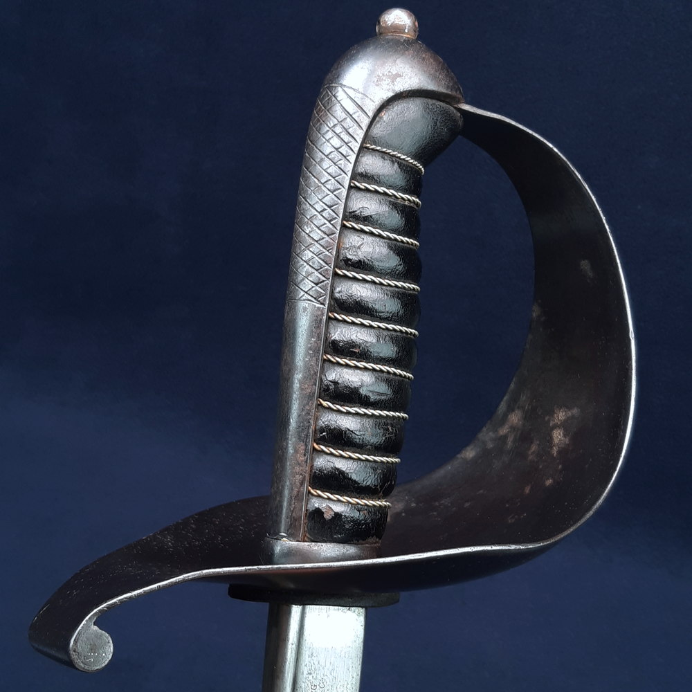The Brazilian Republic made extensive efforts in the early 20th century to cut its reliance on imported arms, and by 1911 was manufacturing many iron articles for the cavalry at its own production facility, the Arsenal de Guerra do Rio de Janeiro, which may have included scabbards as some scabbards for this model bear the mark ‘AGRJ’. This example’s scabbard is not so marked, so it is probably German import. Besides supplying arms Germany was a key influence on Brazil’s military doctrine in this period, with the Republic using the Imperial German Army as a model for the modernisation of their forces until it was supplanted by a French military mission to Brazil in 1919.