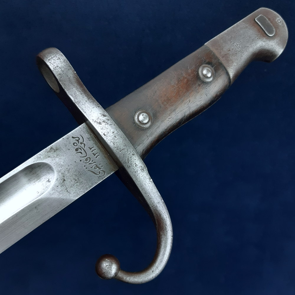 J.P. Sauer was one of five German manufacturers contracted to produce this model of bayonet. They appear to have only produced the 1890. Interestingly their early maker’s mark was incorrectly rendered (the Germans mistakenly applying Arabic lettering and diacritical rules to Osmanli) and was corrected later – this bayonet uses the corrected version.
